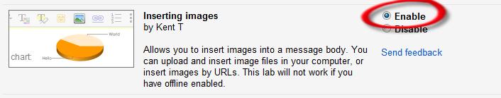 That option is not automatically turned on for you. To turn this on, navigate to your settings and click on the Labs tab. Scroll through the list until you see one that says “Insert Image”