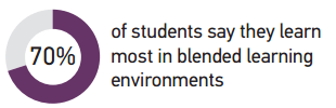 - Blended-learning environments are the norm; students say that these environments best support how they learn.